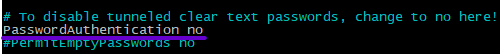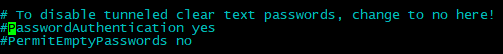 Locate the line PasswordAuthentication yes