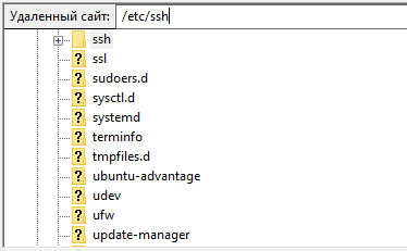 In the panel above the file manager, remove the default path /root and specify /etc/ssh
