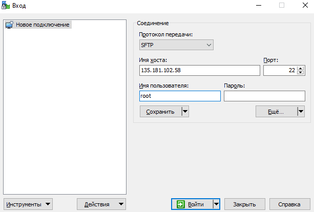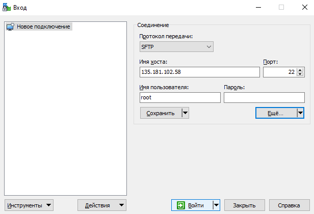 A window opens where you specify the server IP address and the username.