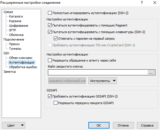 In the window that opens, select the Authentication section.