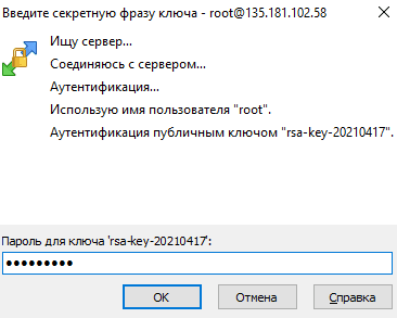 The application prompts for the key passphrase, enter spacecore:
