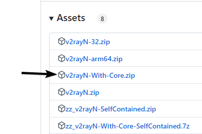 For Windows, install the V2RayN application. You can download it from the official repository using this link. Select the "With-Core" version.