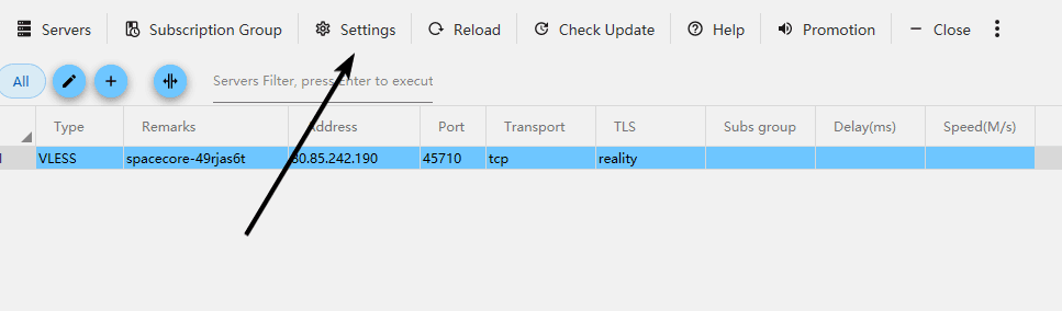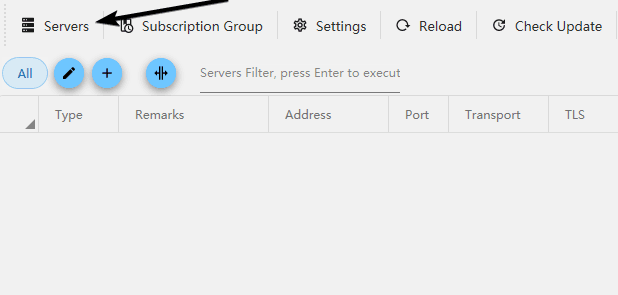 In the application window, click the "Servers" button. Then click "Importing Share Links...". The configuration address starting with "vless://" must already be copied to the clipboard.