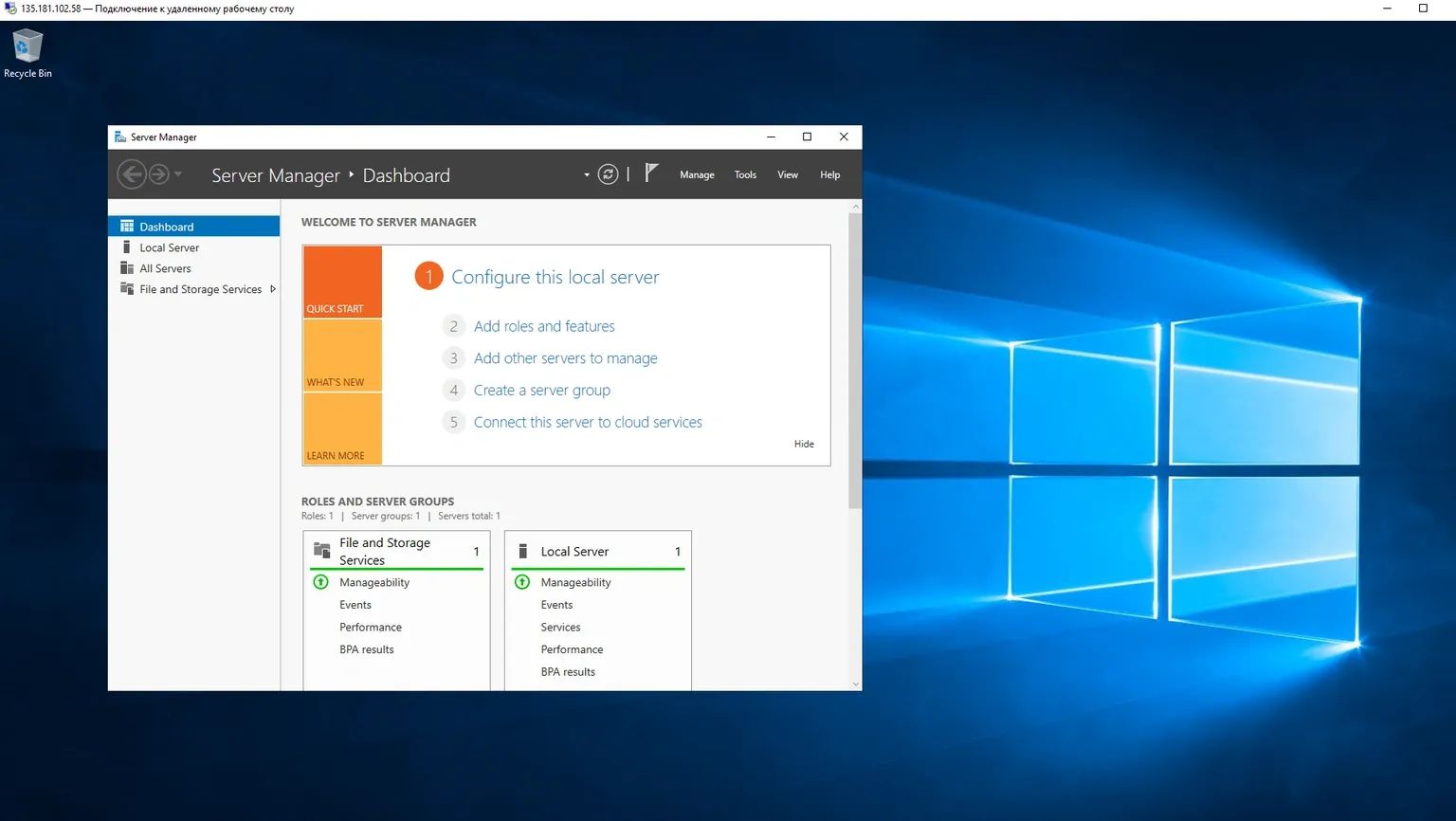 A large window with an empty desktop opens – this is your remote workspace.