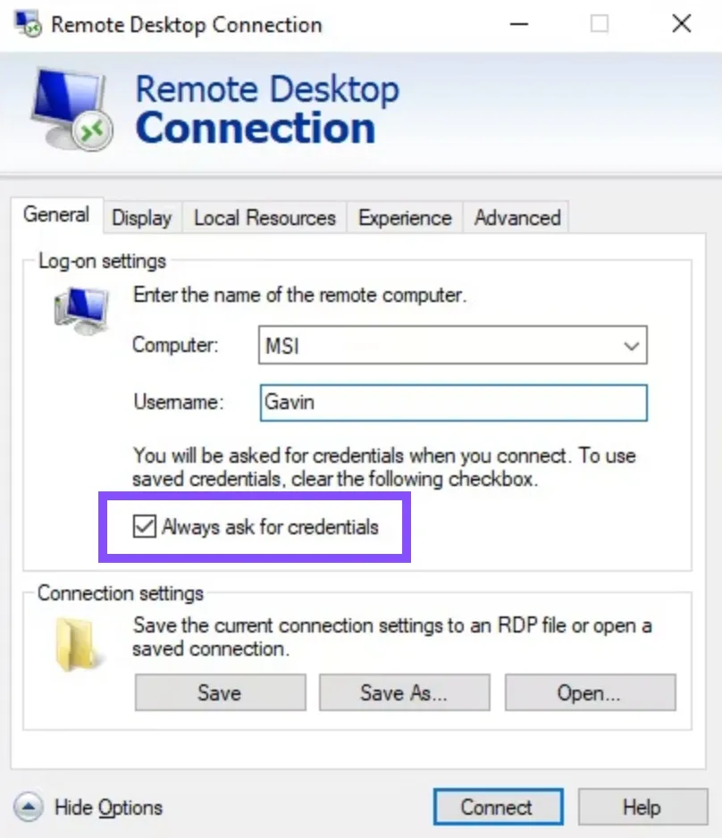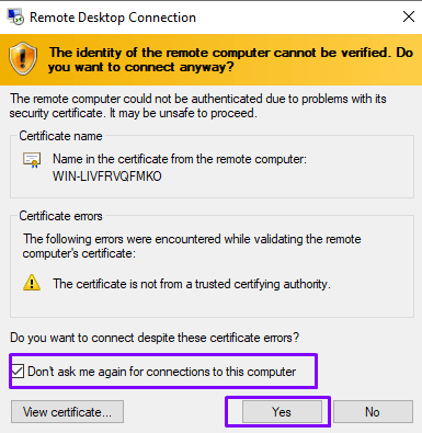 Connecting via RDP