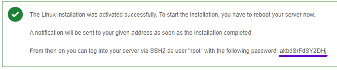 Be sure to save the password for accessing the Rescue session, because after installation using this method it will be assigned to the user of your system.