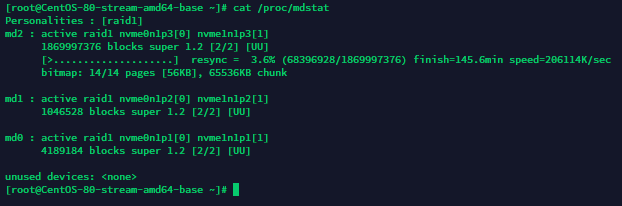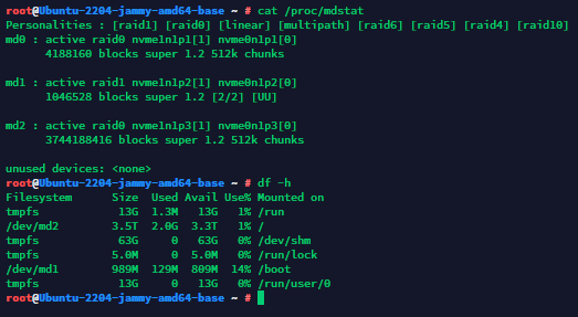After a few minutes, connect again and you will see the OS you selected has been installed. Because we set RAID0 in the configuration for this example, the drives are now operating in RAID0: