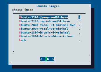 Next, choose the required version of the selected distribution from the available options. Again, for this example we’ll select the latest available image — Ubuntu 22.04.