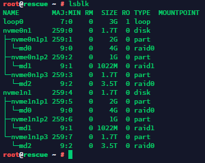 If you are using Software RAID on your server, the output will look similar to this. Pay attention to the md devices, specifically md0, md1, md2: