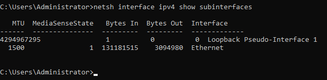 netsh interface ipv4 show subinterfaces