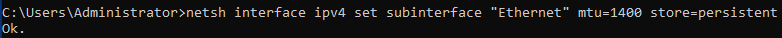 netsh interface ipv4 set subinterface "Ethernet" mtu=1400 store=persistent