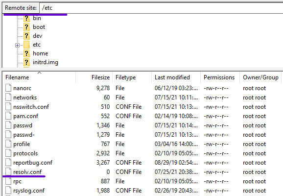 Connect to your server via sFTP. Then navigate to the /etc directory and locate the resolv.conf file there.