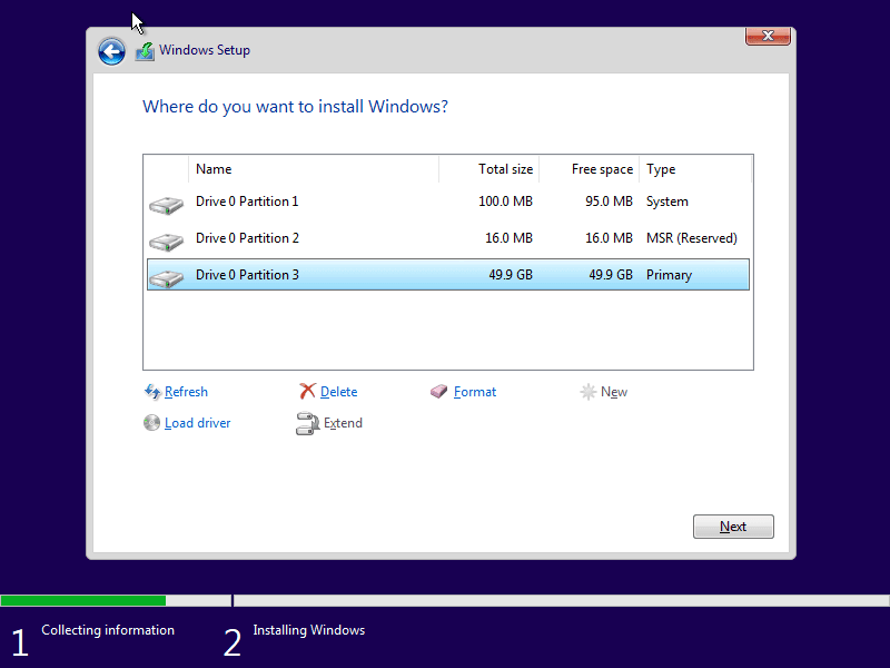 Connect to the server and start the Windows OS installation process: