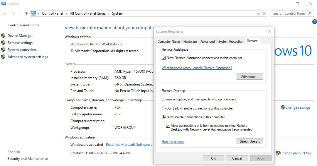 Next, enable Windows Remote Desktop (RDP) in the corresponding settings.