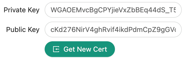 Click Get New Cert to automatically generate random keys.