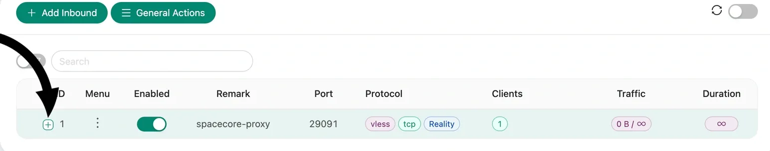 Log in using the username and password you specified earlier. Go to the "Inbounds" page and then click the "Add inbound" button to create a new connection.