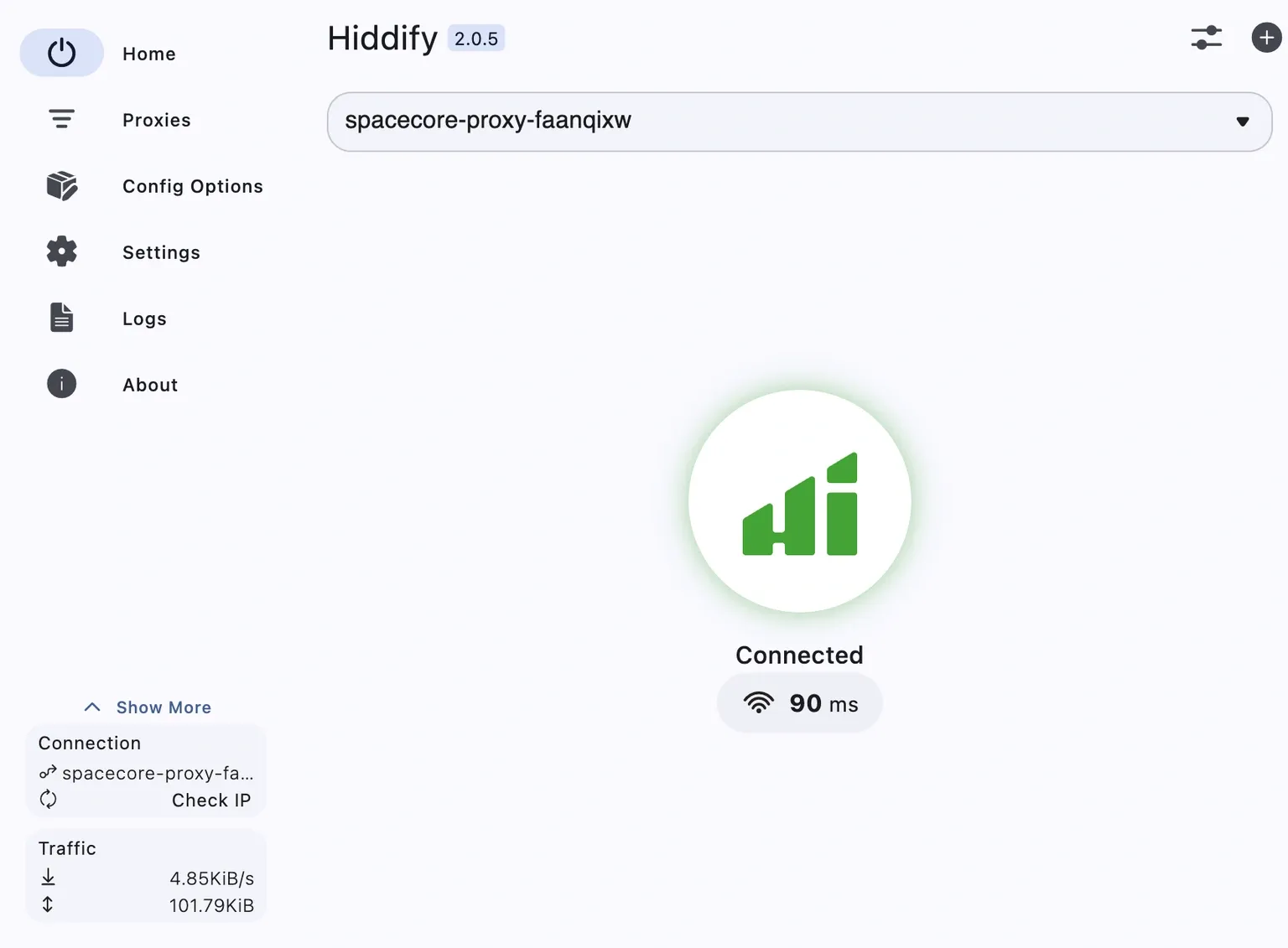 Next, you can click the large button in the center to establish a connection to the proxy server.