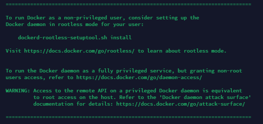 Wait for about 1 minute (the time depends on the network speed and the performance of the server you are using). The following message indicates that Docker has been installed successfully.