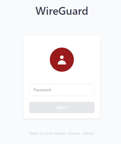 Wait for the installation to finish and make sure that no errors occur during the process. Almost done! Next, open your browser and go to "IP:51821", where "IP" is your server address. The following page will open, where you need to enter the password that you specified when running the WireGuard installation command.