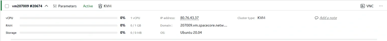 Follow the link https://spacecore.cloud/, enter the Username and then the Password for the control panel (the password line is underlined in the screenshot).