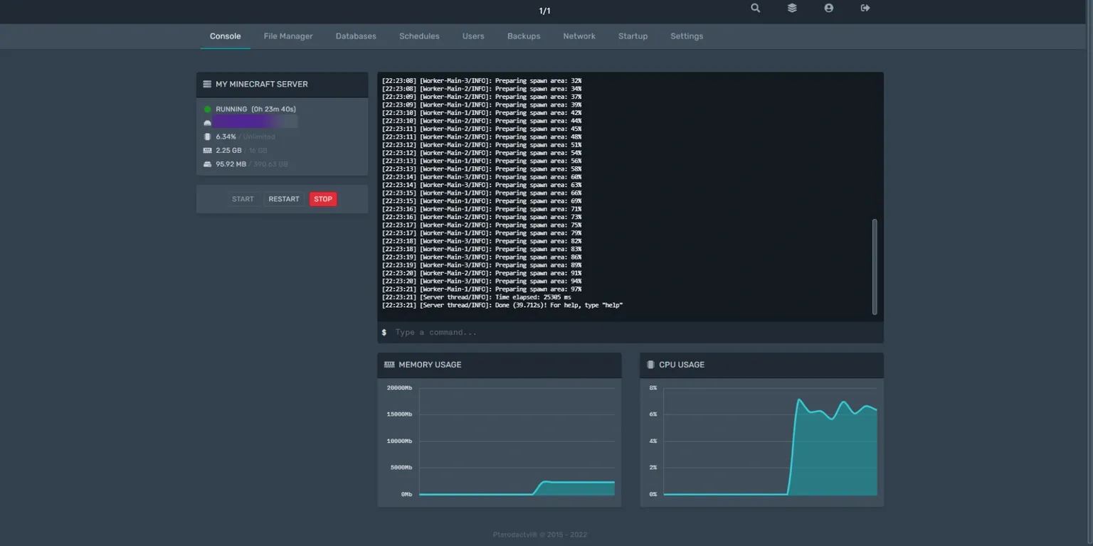 This guide explains how to use the game hosting web panel. By default, all users are provided with the Pterodactyl panel.