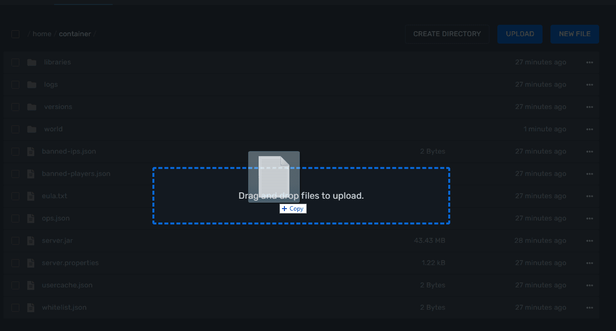 You can upload any file to the game server by simply dragging and dropping it into the file manager area in your browser.