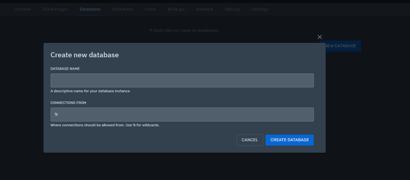 In the Databases section you manage the databases associated with your server. Here you can: