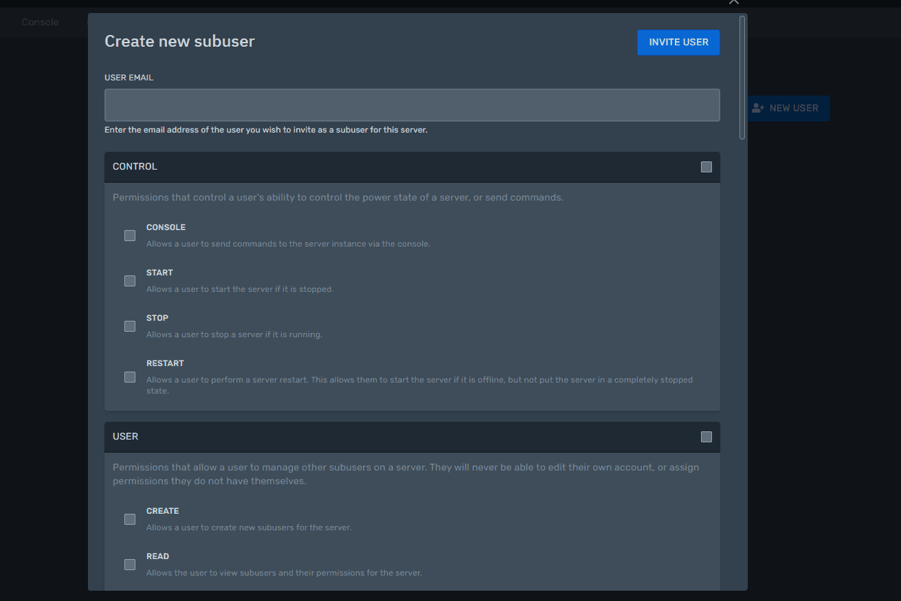 In the Users section you can grant other people access to manage your game server. For each user you can configure permissions: