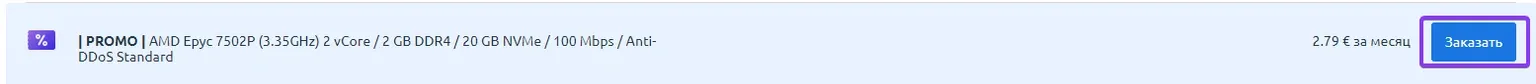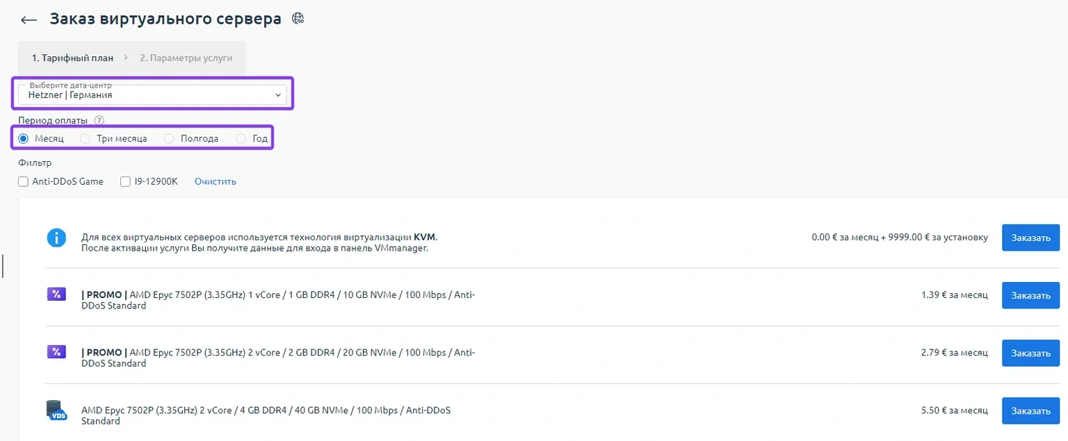 После выбора тарифного плана нажмите кнопку «Заказать» напротив нужного сервера.