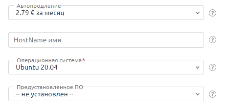 • Предустановленное ПО — позволяет автоматически установить дополнительное программное обеспечение на сервер сразу после активации. Параметр необязателен: все нужные программы при желании можно установить вручную.
