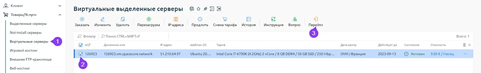 Используя данные, предоставленные в письме активации услуги, авторизуйтесь в панели управления . Также в панель управления можно попасть, используя кнопку «Перейти» в личном кабинете.